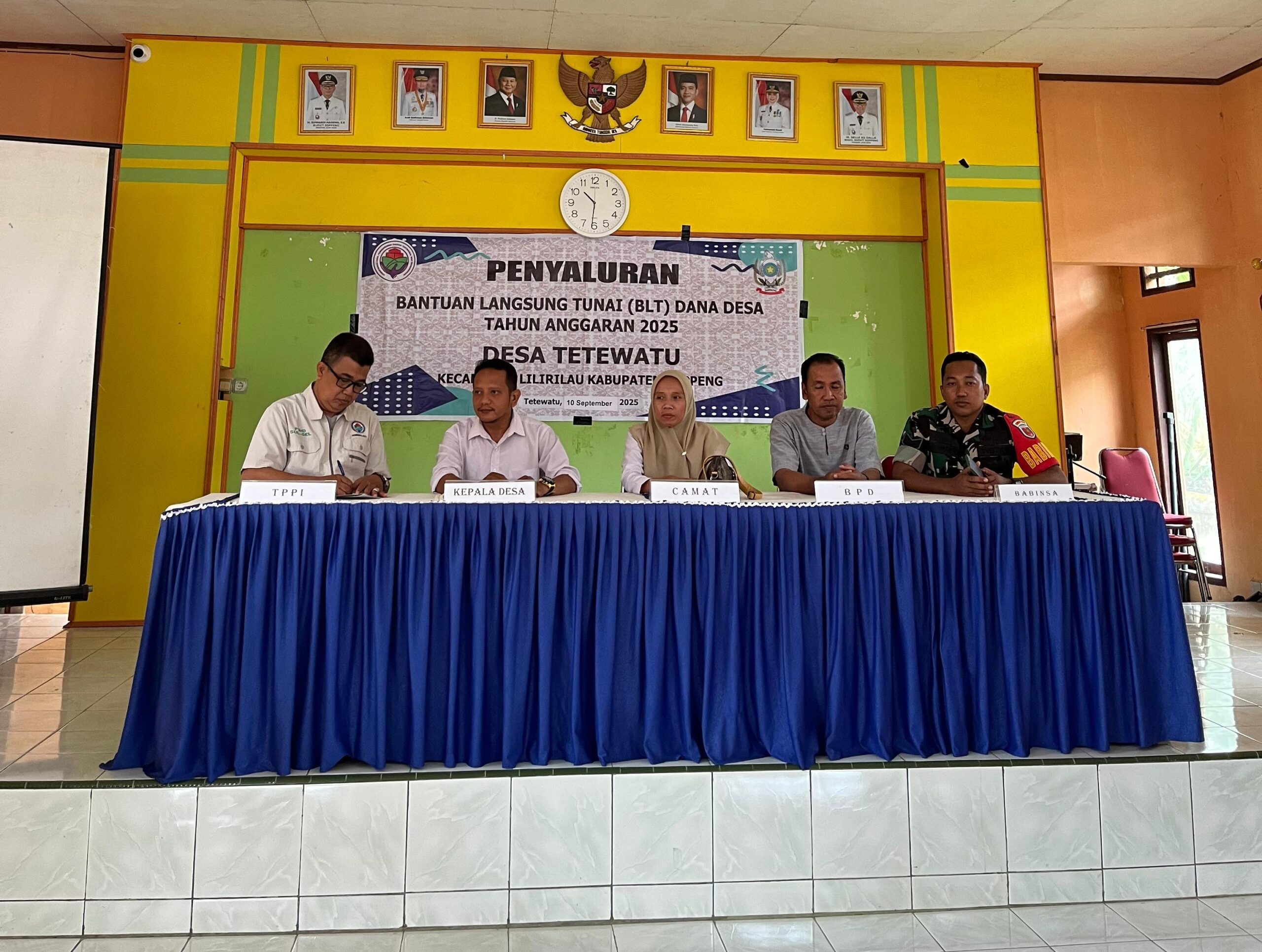 Tetewatu, 10 September 2025, Pemerintah Desa Tetewatu, Kecamatan Lilirilau, menyalurkan Bantuan Langsung Tunai Dana Desa (BLT-DD) Triwulan ke-3 (Juli- Agustus- September), pada Rabu (10/9/2025) bertempat di Balai Desa Tetewatu.